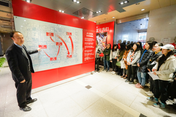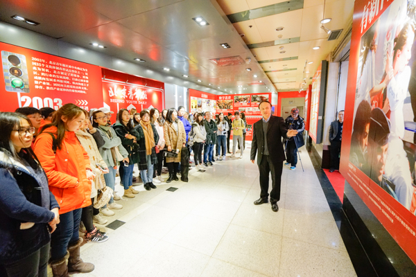 师生参观北京青年报社展厅,张延平社长为学生介绍报社发展史 首先张延平社长带领师生们参观了北京青年报社展厅,张社长在现场耐心详实地向同学们讲述北京青年报的发展历程,从开始的艰辛到后来的辉煌,无一不显示出北青报作为一家有影响力的媒体所秉持的信仰和执着的求索。随后同学们在刘鹤副总编的带领下参观了报社新媒体部门、照排中心等,亲身体验的方式更激发了同学们对媒体的热情。