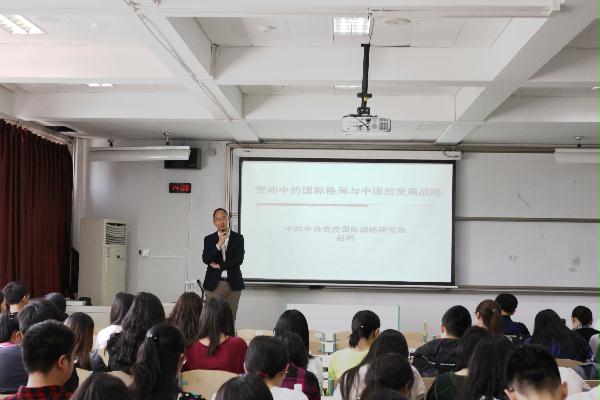 为加强师生十九大精神学习,深入领会十九大报告精神,4月24日下午14时,在人文楼428教室,bet3365info党总支共同邀请中央党校国际战略研究所赵柯副教授,做了主题为变动中的国际格局与中国的发展战略的报告,进行了一次特殊的党课学习活动。活动由bet3365info党总支书记高凌云主持,来自bet3365info和兄弟院系的师生100余人参加此次党课学习。 赵柯副教授纵观历史长河,以清晰的脉络梳理了中国改革开放四十年的发展历程。“四十年来,我国在改革开放的大路上不断突破,在经济发展上取得了重大成就,GDP从40年前占世界比重的3%-4%,跃升至现在的15%。”他介绍,在当今世界经济全球化的趋势下,中国正迎风而上,积极打开国门,在世界市场上寻求合作共赢,扮演着“世界工厂”和“世界市场”的角色,成为了国际经济发展的重要推动力之一。 通过对中国长期发展历程的纵览,在场师生加深了对我们党在奋斗过程中取得的历史性成就的认识,促使师生更好地把自己个人的前途、发展,与国家、民族的命运紧密地联系起来,为实现最伟大中国梦而奋斗。 “理论联系实际,历史联系当前。”要正确看待当今变动中的国际格局,培养国际视野,首先需要加强对国际问题的认知与理解。基于此,赵柯副教授就当今的全球性焦点问题——“核武器危机”、“恐怖主义威胁”、“中美贸易摩擦”等为师生进行了介绍与分析。同时,赵柯副教授强调:“和平发展是当今整个世界发展的主流趋势,中国更要顺应、引领时代潮流,与世界融合,坚持自己的发展道路。” 赵柯副教授逻辑清晰且有条理的精彩讲解引起了师生的深度思考。通过本次学习师生纷纷表示,深受鼓舞,收获良多,深化了对于十九大精神和中国发展战略的理解。在今后的学习工作中要树立坚定的信念与远大理想,发挥表率作用,把十九大精神转化为实际行动,努力工作,刻苦学习,勇于担当,不忘初心,牢记使命。