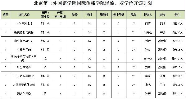 北京第二外国语学院bet3365info辅修、双学位开课计划